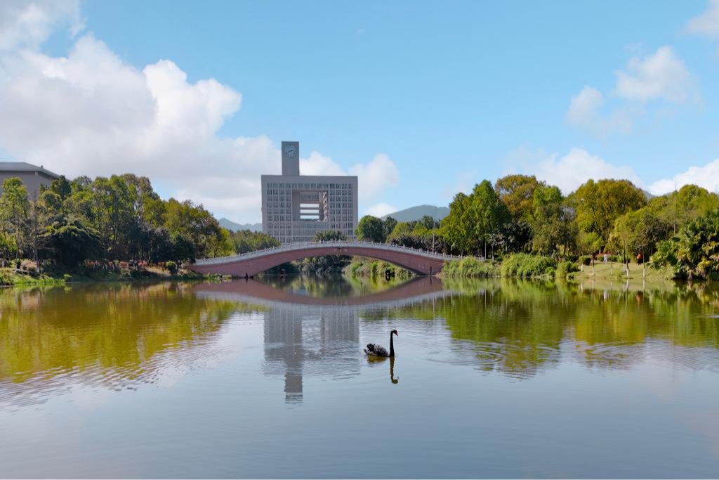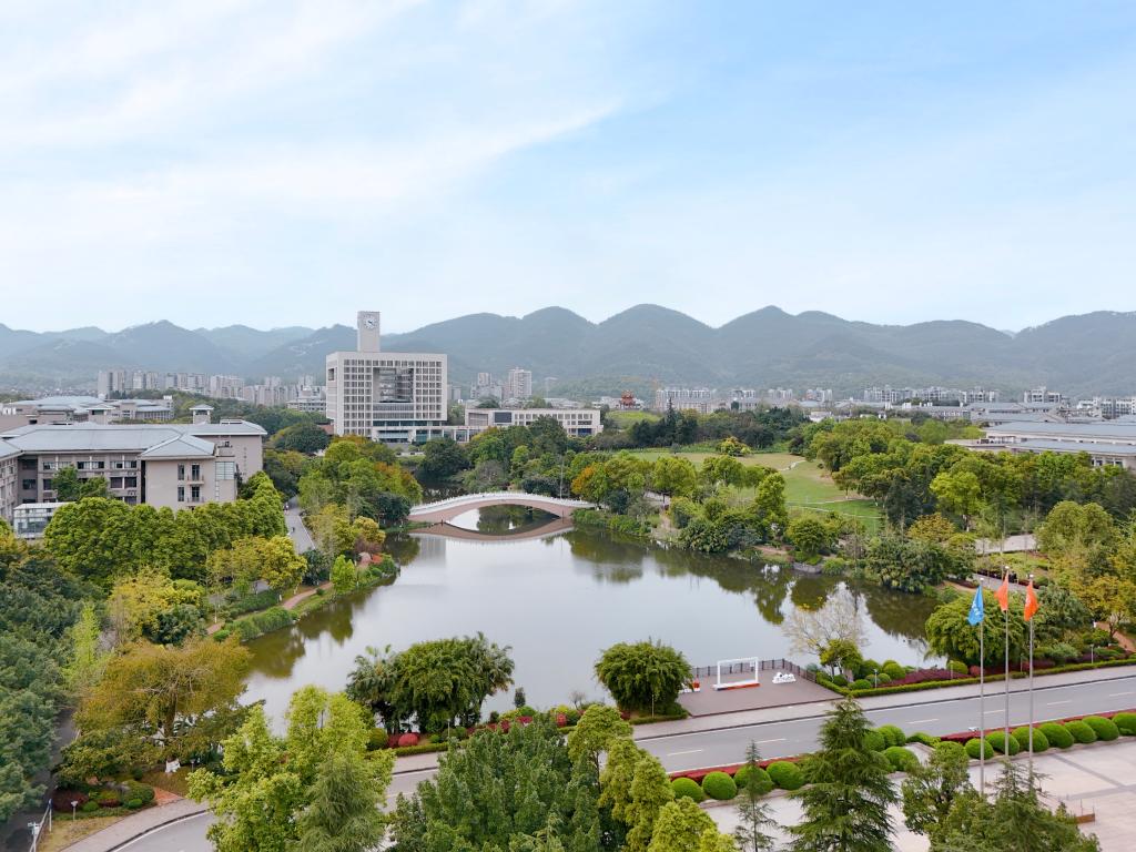 镜湖钟楼映山青