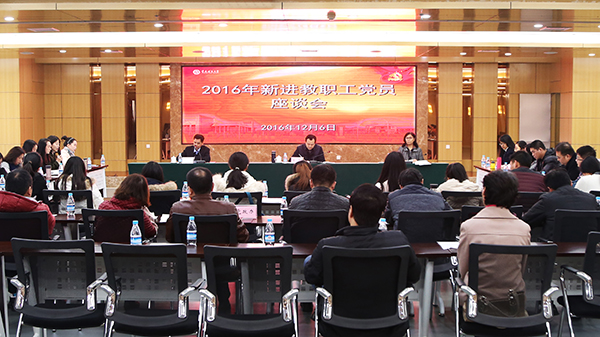 12月6日下午,2016年新进教职工党员座谈会在大学城校区博雅楼503会议室召开。学校党委书记曾礼,副书记龚燕,2016年新进教职工党员及相关基层党组织主要负责人,党政办、组织部、宣传部、教务处、人事处主要负责人参加座谈会。座谈会由副校长孔春阳同志主持。