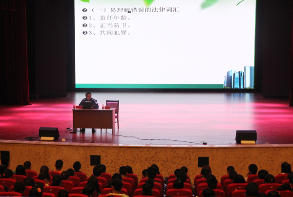 在近两个小时的报告中,潘警督从“大家了解一些简单的法律常识”、“谈谈安全知识”、“谈谈心理健康”三大板块14个方面25个案例详细阐述了“责任年龄、正当防卫、共同犯罪、人身安全、交通安全、电信网络诈骗、法院传票、网上兼职、盗QQ冒充熟人”等大学生易发的、常发的安全事故,通过严谨的数据和生动的案例,重点分析了诈骗等案件的发生特点,剖析了校园各类多发案件作案人的犯罪心理特征,并就大学生在日常生活中如何加强防范意识,增强自我保护能力提出了很多宝贵意见。