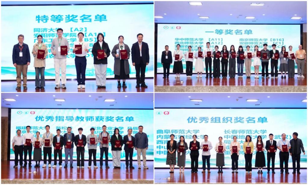 决赛分4组在2个赛场同步进行。各参赛团队围绕“数智驱动与绿色未来”主题展开了精彩纷呈的现场答辩。从黄河流域生态治理到城市空间优化,从耕地保护到低碳转型,学子们凭借扎实的专业知识、严谨的科学方法和前沿的技术手段,构建模型、分析数据、提出方案,生动诠释了如何以“数智”引擎驱动自然资源治理能力提升,为构建人与自然和谐共生的现代化贡献了青年智慧。评审专家组从创新性、科学性、应用价值及现场表现等多维度对作品进行综合评价。最终,大赛评选出特等奖6项、一等奖14项、二等奖48项,并颁发了优秀组织奖10项和优秀指导教师奖10项。taptap点点获优秀组织奖,曾春芬教授荣获“优秀指导教师奖”,由张静、曾春芬指导,苏新文、刘姚、李卓佳、王钰、李恒参与的作品《澎溪河流域TN遥感反演及其驱动因子研究》获大赛特等奖,由夏成城、韦杰指导,刘徐辰豫、林俊熙、何馨、钟小洁参与的作品《长江干流重庆段地表水质量综合评价及水资源保护策略》获大赛一等奖。