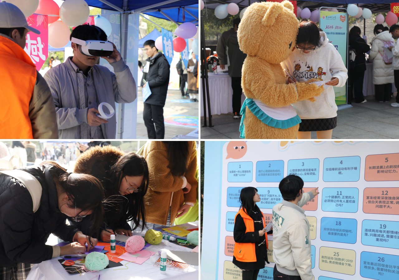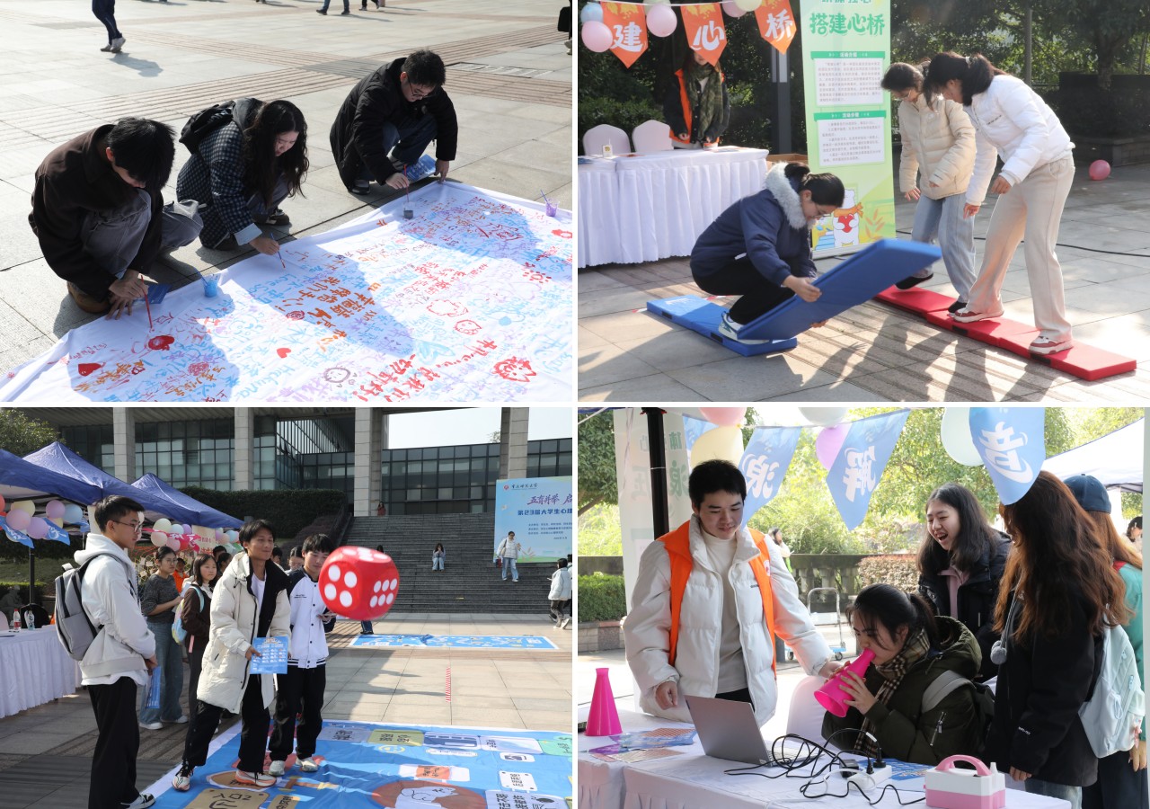 黄永宜与相关负责人走进活动现场,体验特色项目,并同现场学生亲切交流。黄永宜指出,本次活动周以“五育并举”为核心,将心理健康教育与五育内涵深度融合,形式新颖、内容充实、覆盖面广,既贴合学生成长需求,又生动诠释了“融合育人”的教育理念,为全校师生搭建了一个互动交流、心灵成长的优质平台。她要求,各相关部门、各学院要以此次活动周为契机,持续深化心理健康教育与五育并举的融合路径,不断丰富活动形式、拓展覆盖范围,让心理健康教育融入日常。同时,她希望同学们能在系列活动中主动探索自我、关爱自我,在五育滋养中锤炼健康心态、塑造健全人格,以更加昂扬的姿态奔赴青春征程。