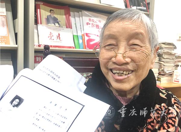 对于老学长曾祥瑜来说,两年的学习时光虽短,但这两年间学习到的知识、思想、精神却陪伴了她一生。1956年,重庆师范专科学校第一届学生毕业,曾祥瑜因成绩优异留校在中文科任党支部书记,和学校的三位老同志一起工作。曾祥瑜回忆,他们言传身教对她的帮助很大,让她学会了工作不是一个人的单打独斗,要关心和依靠群众才能齐心协力共渡难关。