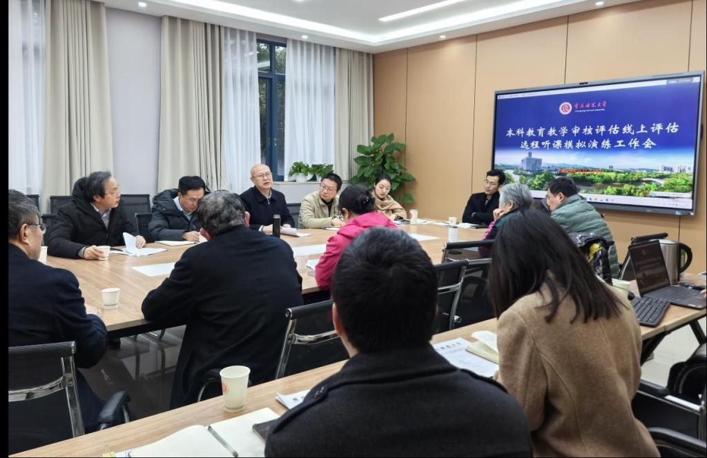教务处负责人向督导专家通报了学校审核评估工作的进展情况,详细介绍了专家线上评估考察的主要事项,对远程听课模拟演练工作流程进行了讲解,明确了工作分组、工作职责和工作要求,并进行了线上听课系统的演示操作。